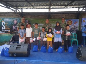 Kapten Cek E. Ijudin, selaku Danramil 0608-12/Campaka, memimpin acara yang diisi dengan penerimaan ucapan selamat dari tamu undangan, pembagian hadiah lomba mancing, dan pemberian santunan anak yatim.