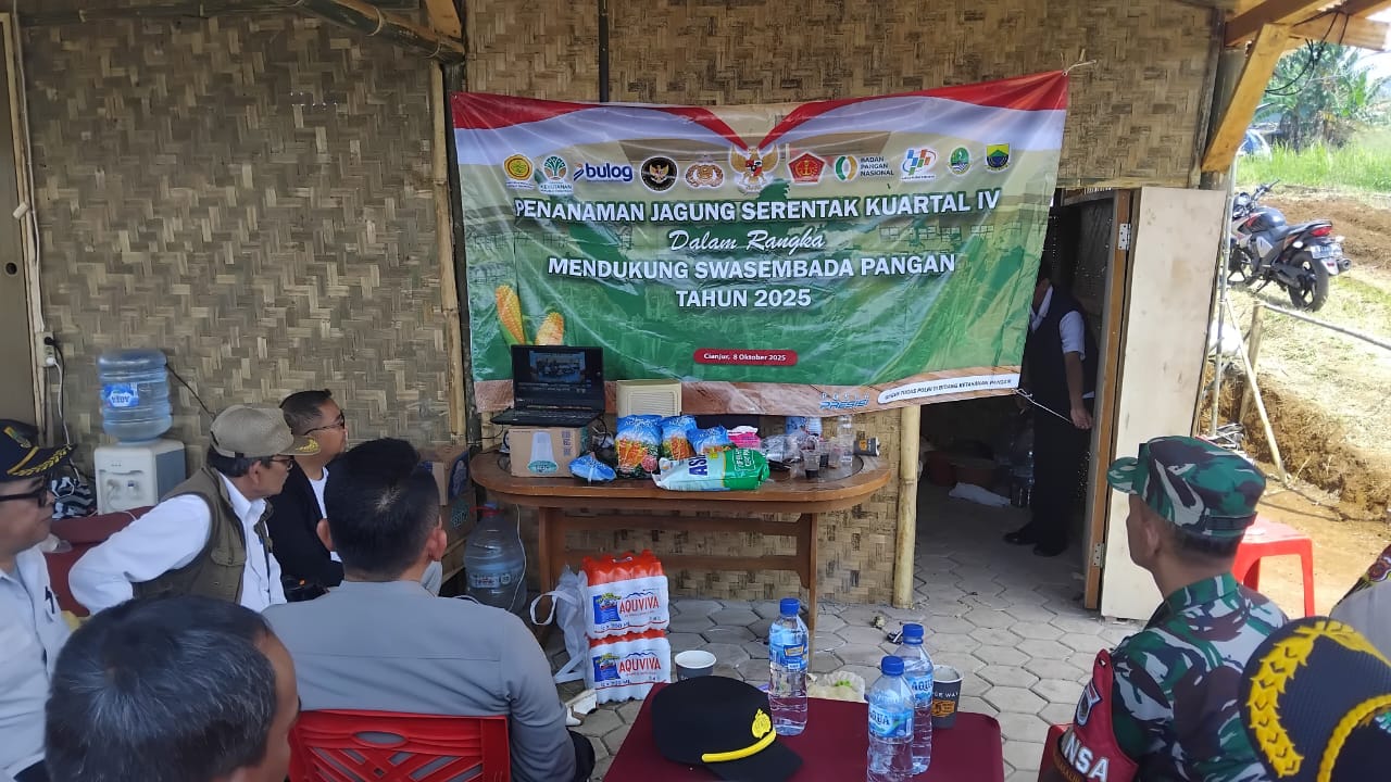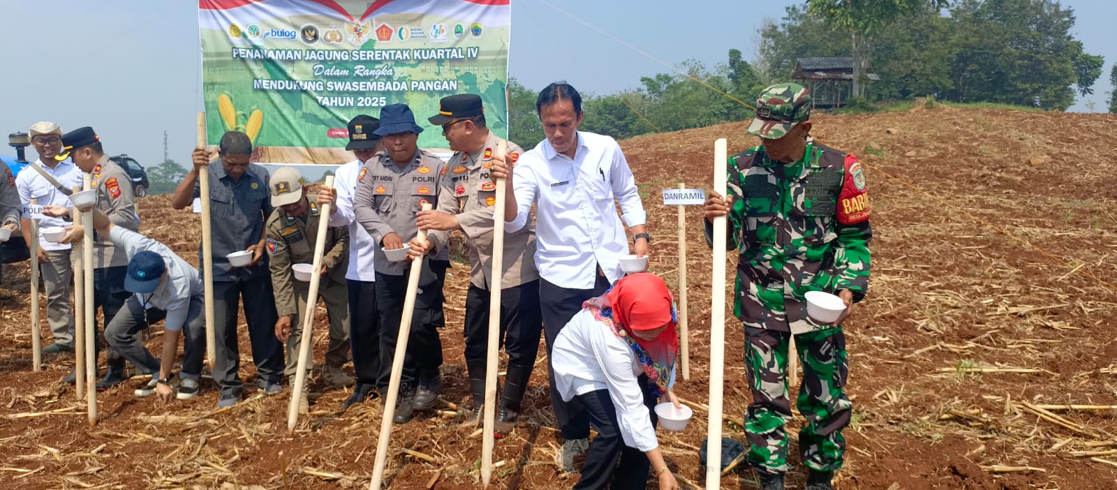 Babinsa Pelda Sugiono Bersinergi dengan Polres Cianjur, Kawal Program Ketahanan Pangan dengan Tanam Jagung Hibrida