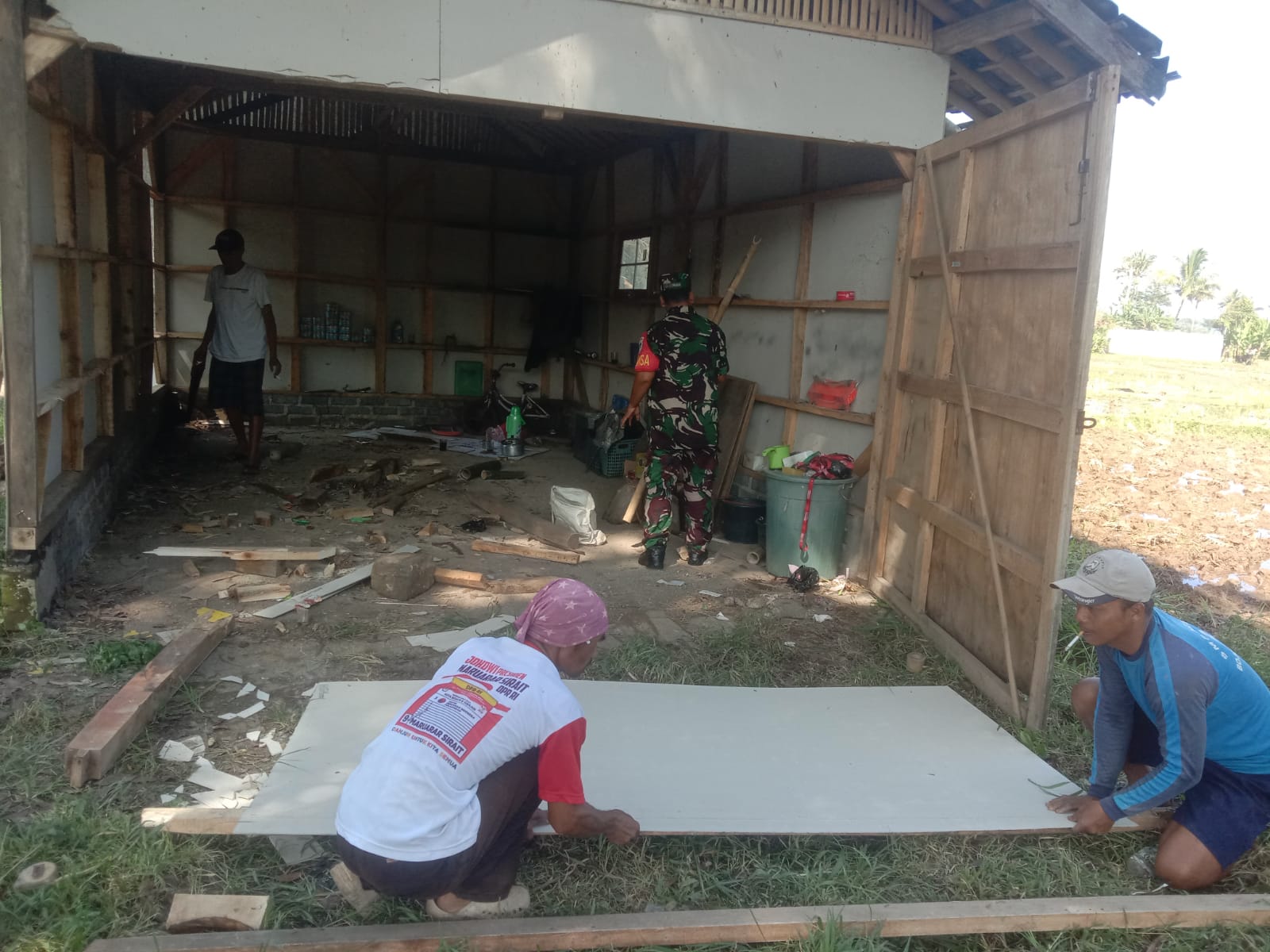 Wujud Kemanunggalan TNI: Babinsa Jatisari Pimpin Kerja Bakti Perbaikan Rumah Warga