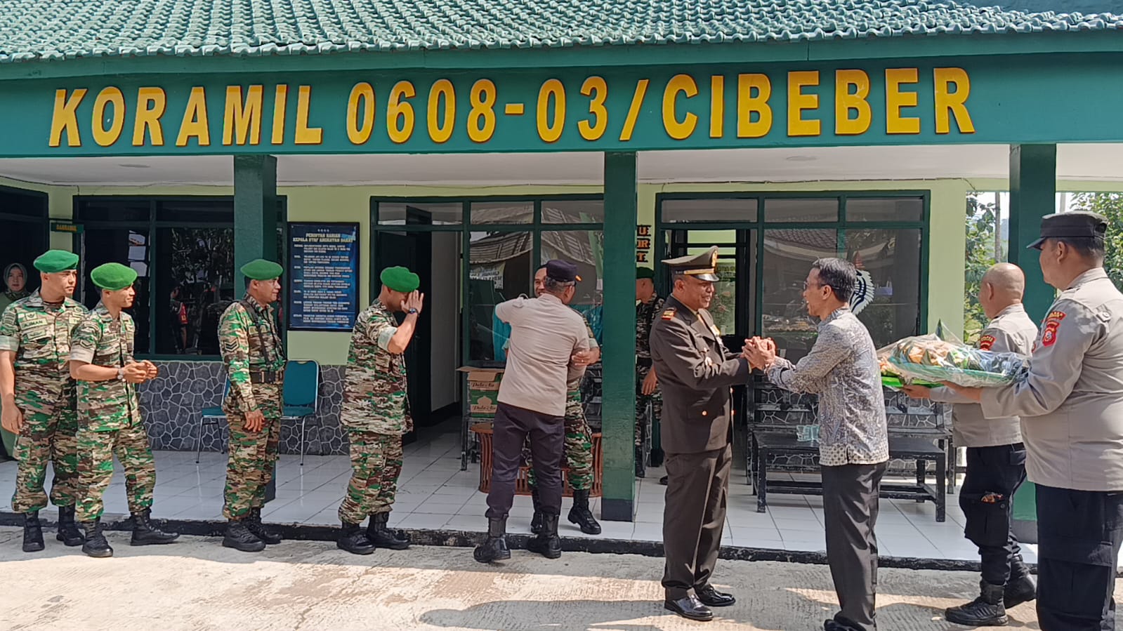 Forkompincam Cibeber dan Polsek Cibeber Beri Ucapan Selamat Ulang Tahun TNI ke-80 kepada Anggota Koramil 03/Cibeber