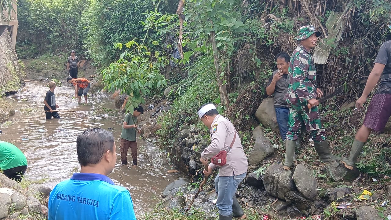 Anggota Koramil 0608-05/Cugenang, Serka Kholidin dan Lainnya, Ikuti Kegiatan Karya Bakti Pembersihan Sungai Cibalagung