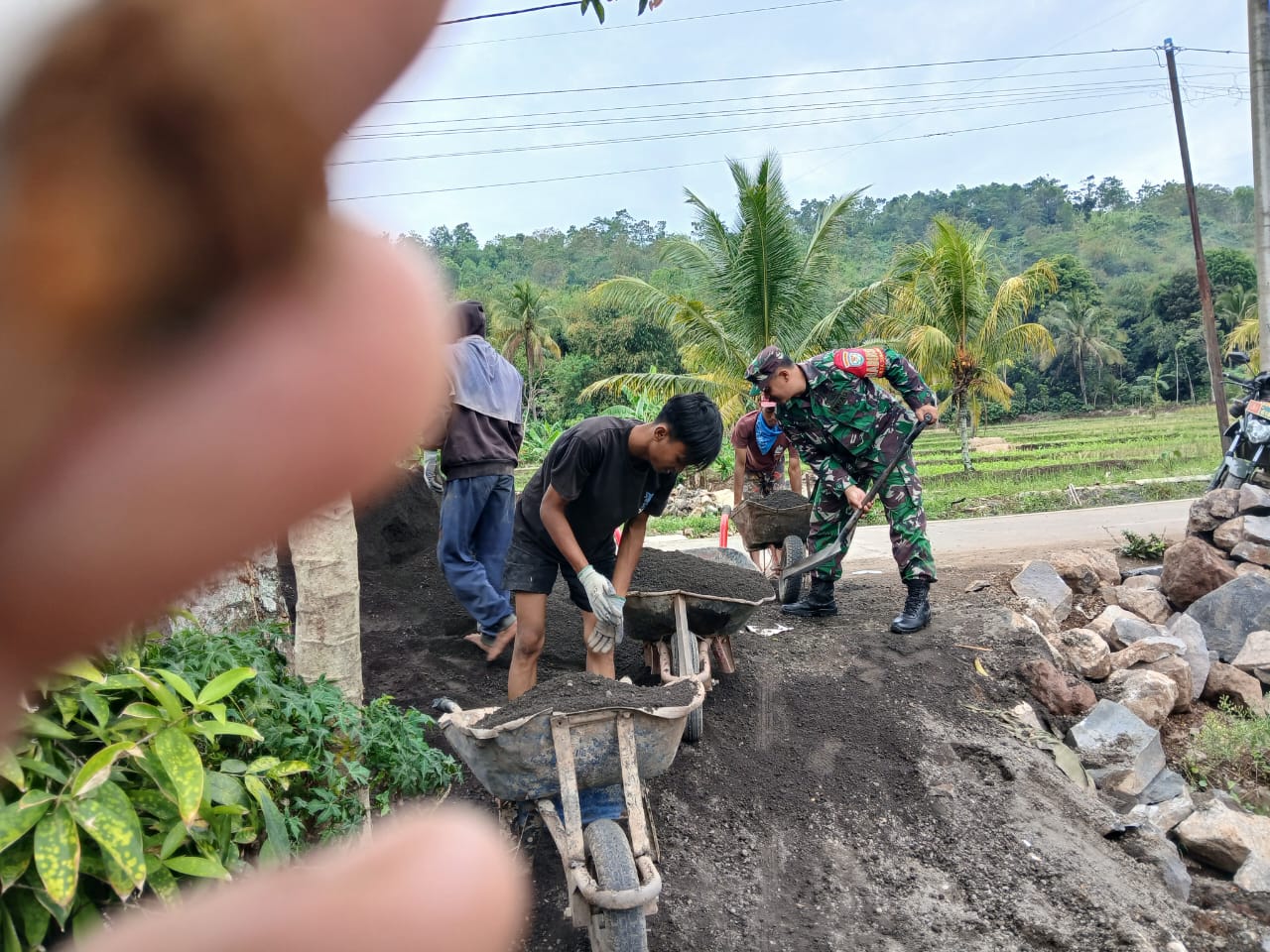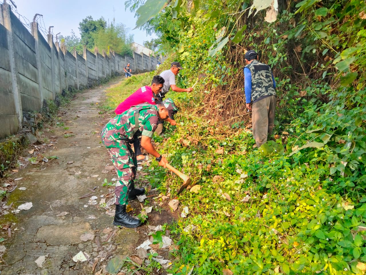 Jaga Kebersihan Lingkungan, Serda Syukri Pimpin Kerja Bakti Pembersihan Jalan di Kertamukti