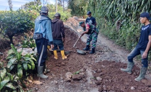 Babinsa Tegalega Beraksi, Karya Bakti Pengecoran Jalan Wujudkan Infrastruktur Desa yang Lebih Baik