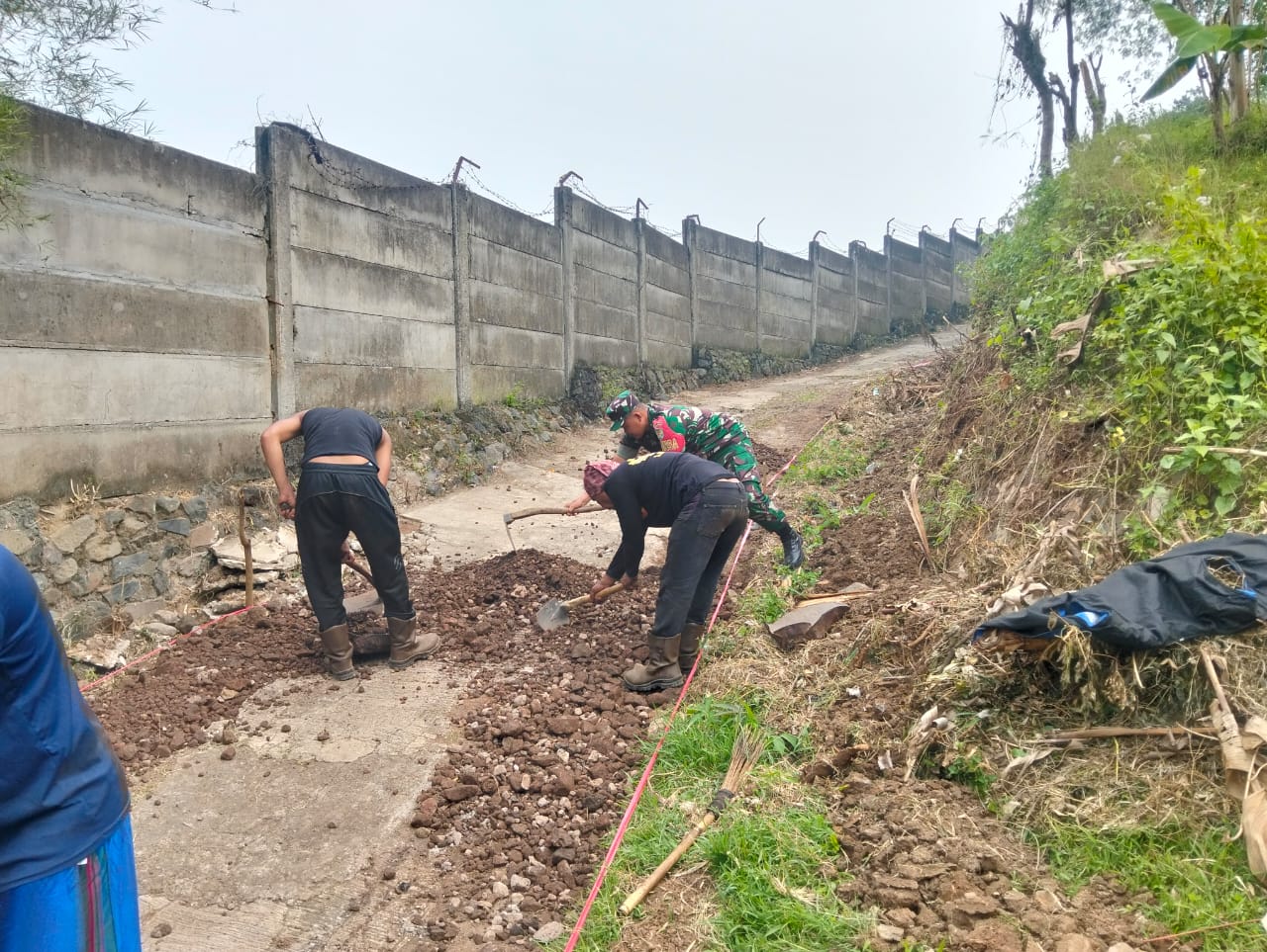 Babinsa Desa Kertamukti Berpartisipasi dalam Kerja Bakti Perbaikan Jalan