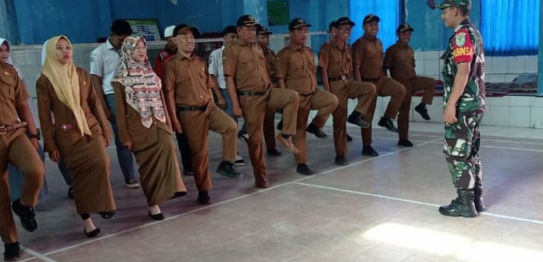BABINSA DESA SUSUKAN SERKA ENDANG HIDAYAT LAKSANAKAN LATIHAN PERATURAN BARIS-BERBARIS BERSAMA APARAT DESA