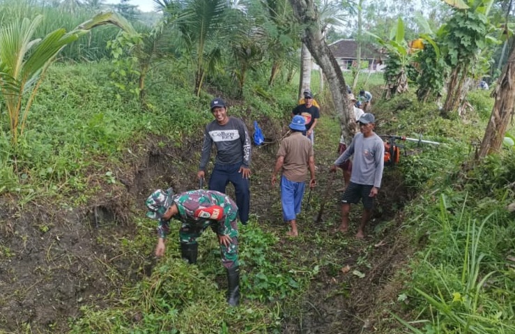 BABINSA DESA PADAASIH SERDA RANDI PURWADI LAKSANAKAN KARYA BAKTI PEMBERSIHAN SALURAN AIR BERSAMA WARGA