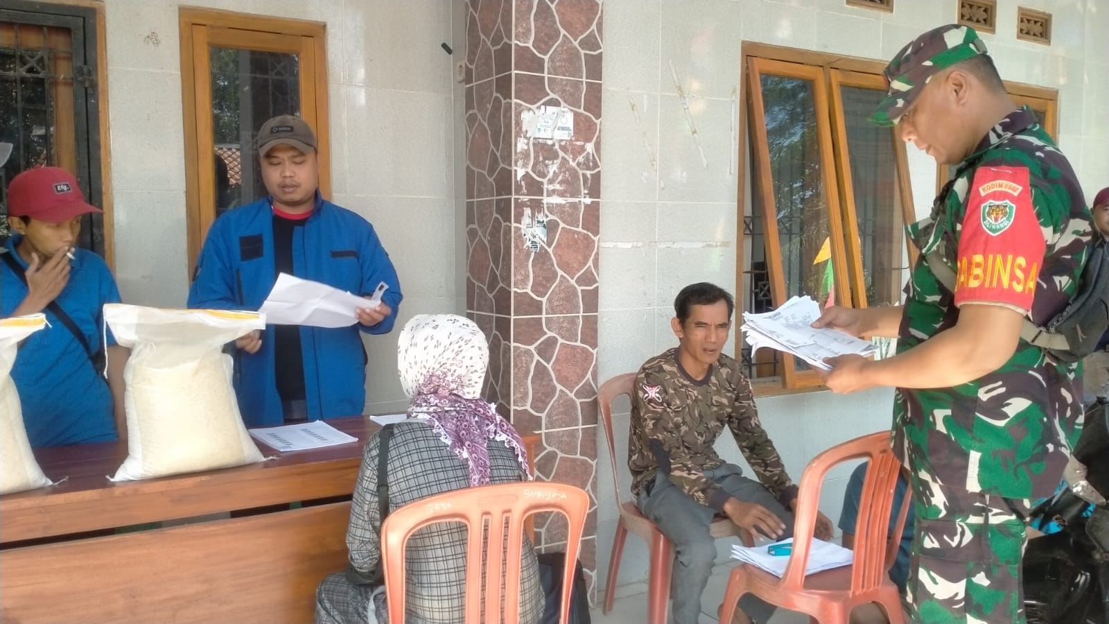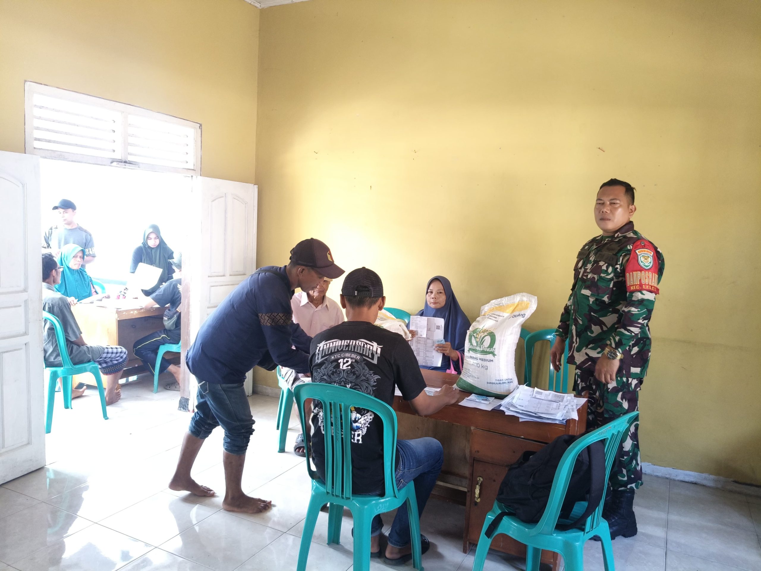 DANPOSMIL LELES MONITORING KEGIATAN BANTUAN BERAS UNTUK WARGA DESA PUSAKASARI