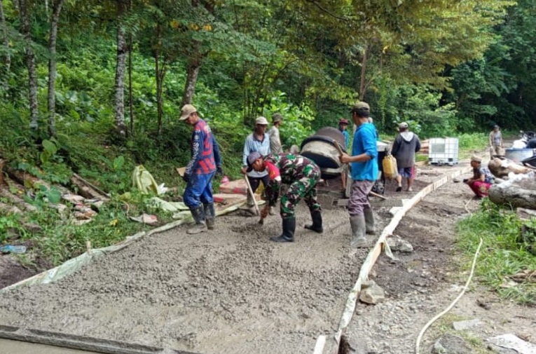 Babinsa Desa Sukamulya Laksanakan Karyabakti Pengecoran Jalan Desa