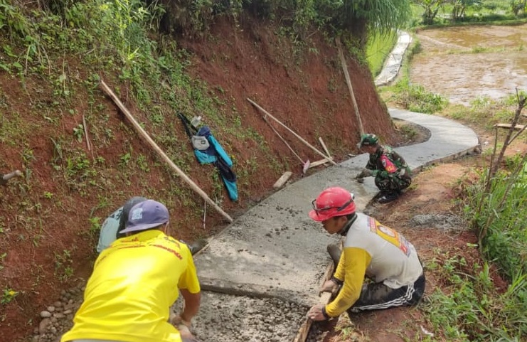 Babinsa Wangunjaya Bantu Perbaiki Jalan Rusak di Pasirpogor