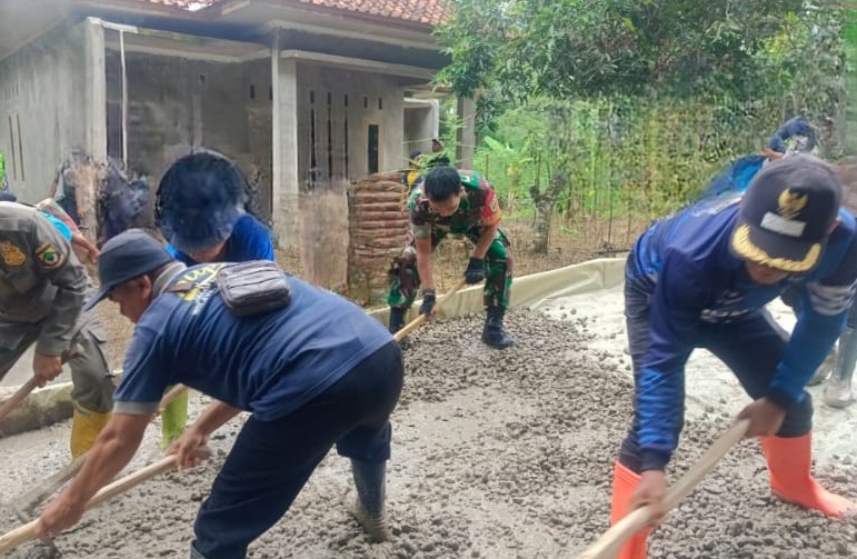 Babinsa Karangsari Turun Tangan, Jalan Rusak di Cikarang Diperbaiki