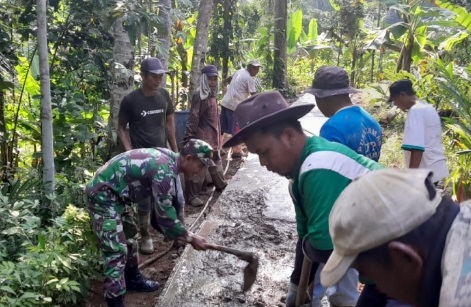 Babinsa Kertaraharja Turun Tangan, Karya Bakti Pengecoran Jalan Berjalan Lancar