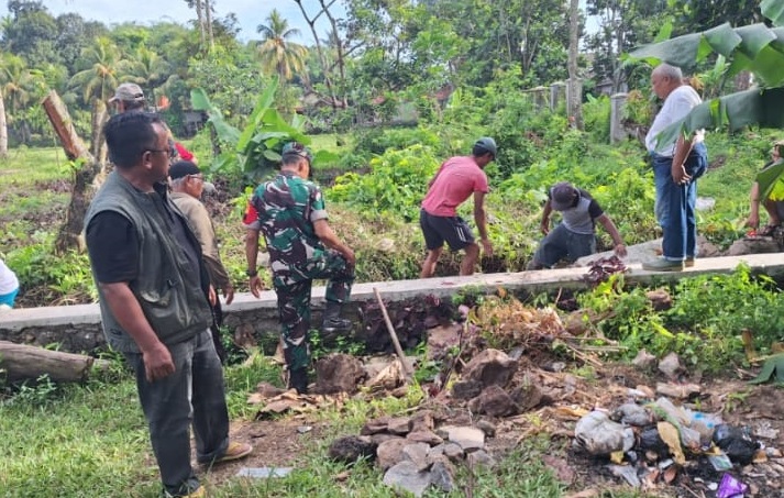 Babinsa Hegarmanah Turun Tangan, Kerja Bakti Pembersihan Selokan Berjalan Lancar