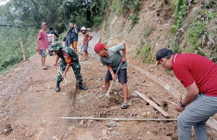 Babinsa Sukarahaja Turun Tangan, Karya Bhakti Pengerasan Jalan Berjalan Lancar