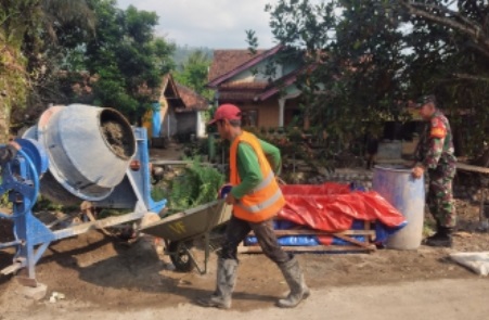Babinsa Sukarama Pantau Pengerjaan TPT Aliran Sungai, Pastikan Kualitas dan Keamanan