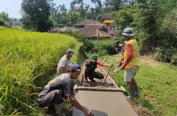 Babinsa Mekar Jaya Turun Tangan, Jalan Rusak di Cidagel Kini Mulus Berkat Karya Bakti