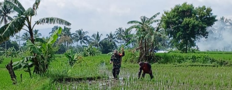 Babinsa Sukajaya Dampingi Petani, Perawatan Padi 2 Hektar Berjalan Lancar