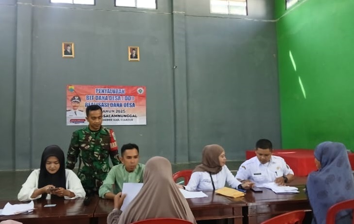 Pastikan Proses Berjalan Lancar, Babinsa Salamnunggal Dampingi Pembagian BLT Desa