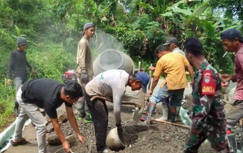 Babinsa Mekarjaya Pantau Karya Bakti Pengecoran Jalan Desa, Infrastruktur Desa Meningkat