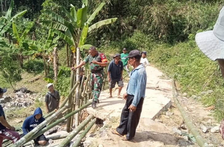 BABINSA DESA WARGASARI AJAK WARGA PERBAIKI TANGGUL YANG JEBOL