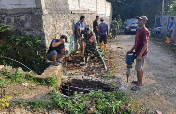 SERKA DADANG SUHENDI LAKSANAKAN KARYA BAKTI PEMBONGKARAN GORONG-GORONG TERSUMBAT