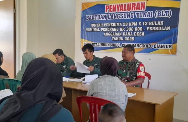 BABINSA DESA NYALINDUNG SERTU PRIYANTO DAMPINGI PEMBAGIAN BLTDD KEPADA MASYARAKAT