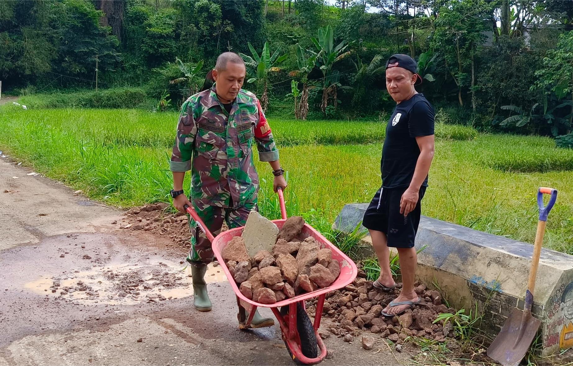 BABINSA DESA WANGUNJAYA SERDA TATO LAKSANAKAN KARYA BAKTI PENAMBALAN JALAN AMBLAS