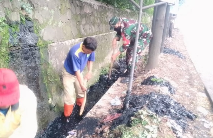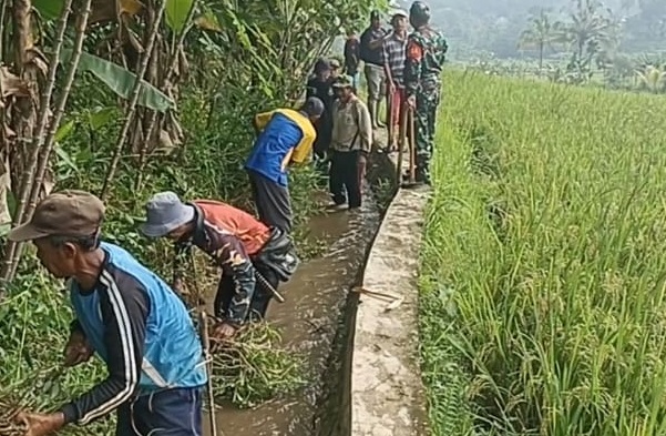 Babinsa Desa Cibadak Laksanakan Karya Bakti Pembersihan Saluran Air, Wujudkan Lingkungan yang Bersih dan Sehat