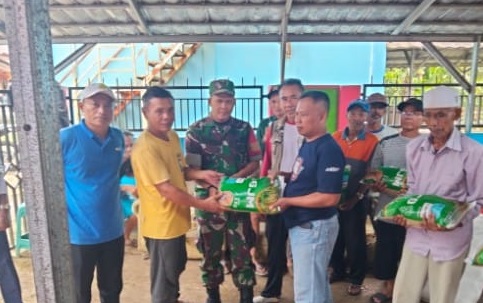 Babinsa Desa Kertamukti Dampingi Penyaluran Bantuan Benih Padi kepada Kelompok Tani
