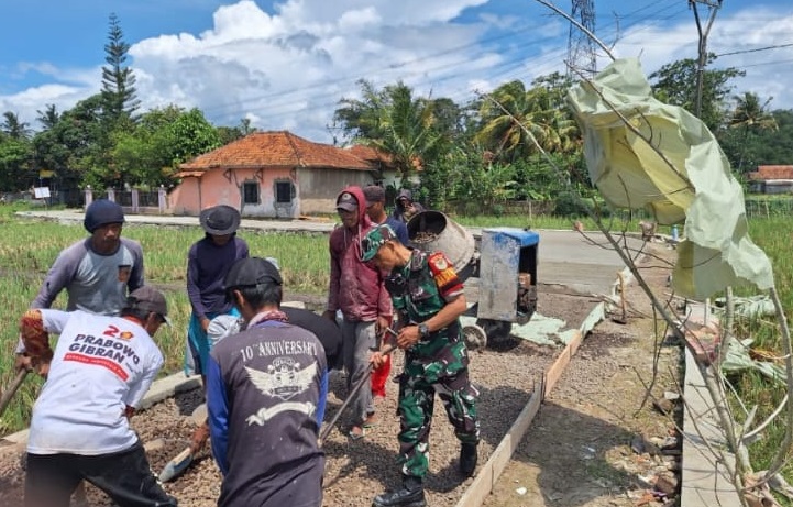 Babinsa Desa Hegarmanah Laksanakan Karya Bakti Pengecoran Jalan Kampung Pasir Panglay