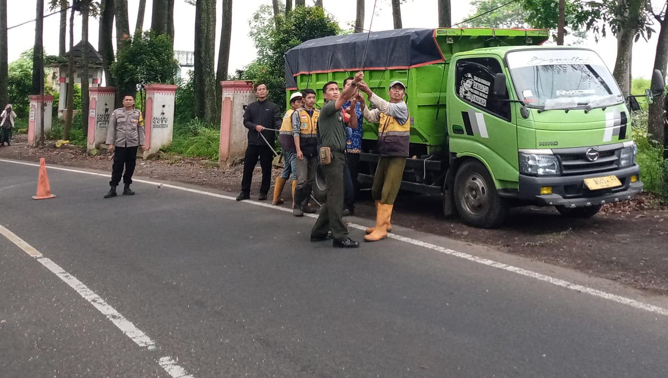 Babinsa Desa Cijedil Laksanakan Pengamanan dan Bantuan Pemangkasan Pohon di Jalur Utama
