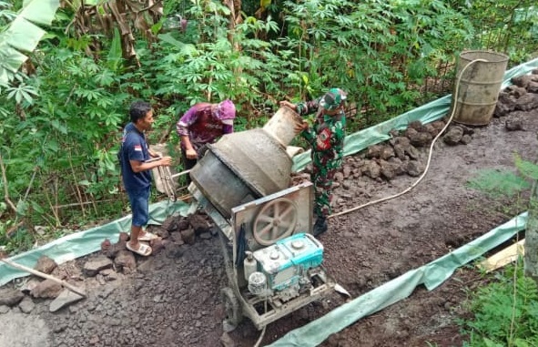 Babinsa Desa Sindangsari Laksanakan Karya Bakti Pengerasan Jalan Bersama Warga
