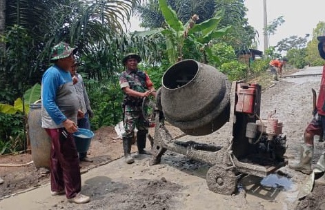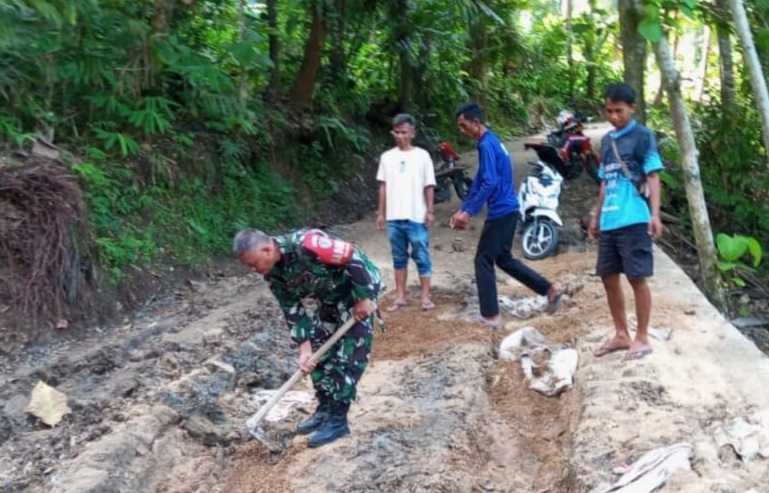 Babinsa Desa Neglasari Laksanakan Karya Bakti Memperbaiki Jalan Desa Bersama Warga