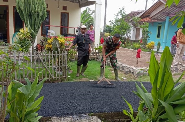 Bantu Masyarakat, Babinsa Desa Mekarwangi Laksanakan Karya Bakti Pengaspalan Jalan