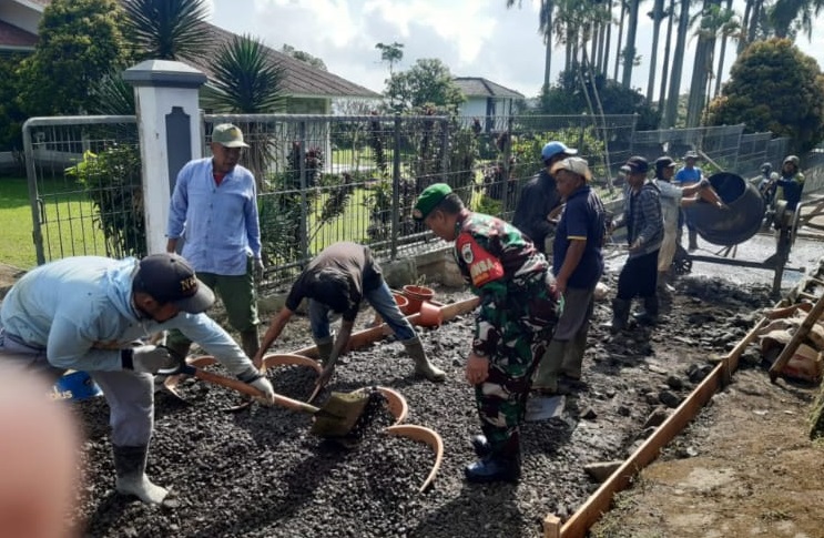 Babinsa Desa Sindanglaya Laksanakan Karya Bakti Pengecoran Jalan
