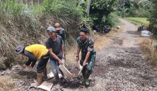 Babinsa Desa Jayagiri Turut Serta dalam Karya Bakti Perbaikan Jalan Desa, Wujudkan Infrastruktur yang Lebih Baik