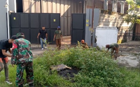 Babinsa Desa Haurwangi dan Warga Bergotong-royong, Laksanakan Karya Bakti Pembersihan Jalan