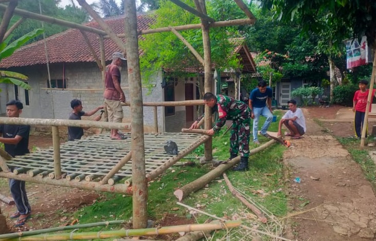 Tingkatkan Keamanan dan Kemitraan, Babinsa Desa Ciranjang dan Warga Bergotong-royong Membuat Pos Ronda