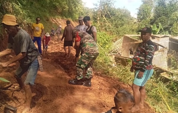 “Babinsa Desa Hegarsari Turun Tangan, Bantu perbaiki Jalan Rusak di Kampung Gunung Gadung”