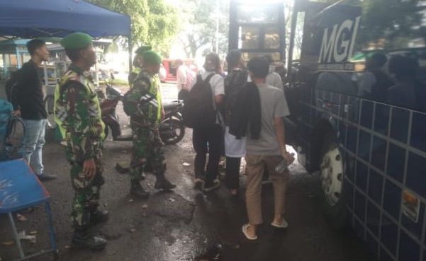 Anggota Koramil 0608-14/Kadupandak Jaga Keamanan di Terminal Rawa Bango