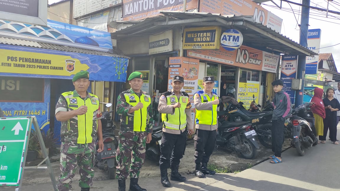 Anggota Koramil 0608-04/Cipanas dan Polsek Cipanas Gelar PAM Idul Fitri 1446 H