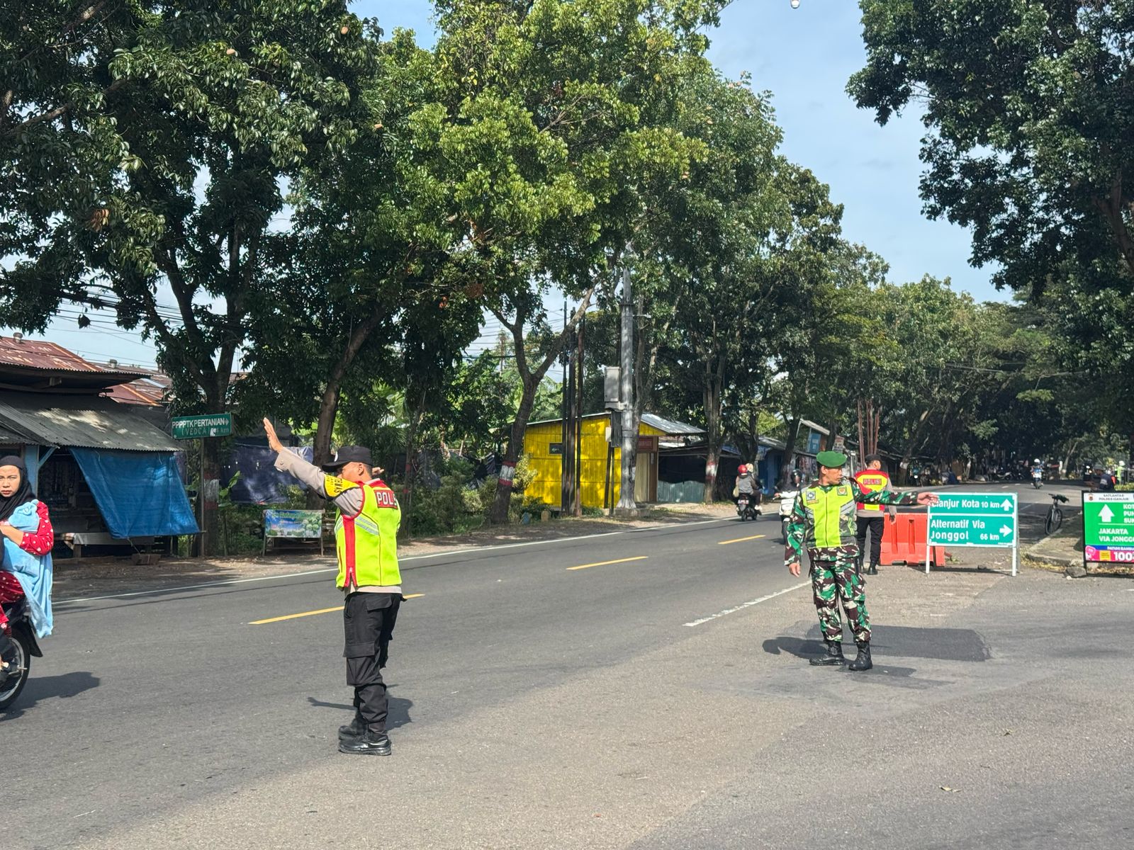 Anggota Koramil 0608-04/Cipanas dan Polsek Sukaresmi Gelar PAM Arus Mudik Idul Fitri 1446 H
