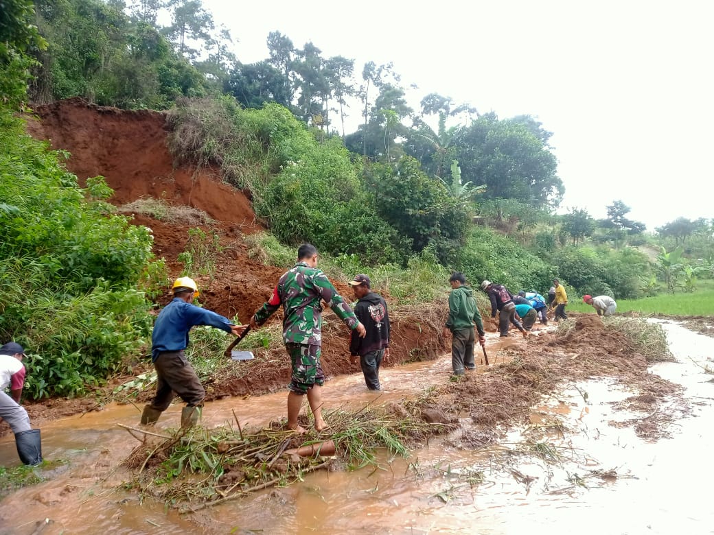 Babinsa Cepat Tanggapi Bencana Tanah Longsor di Desa Ciwalen