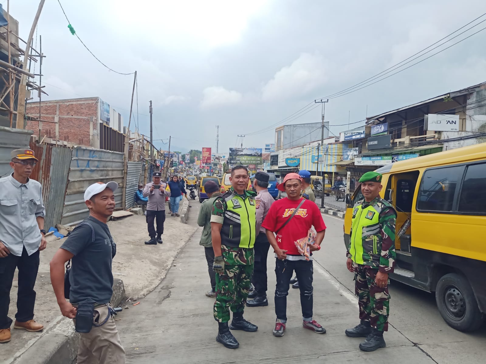 Babinsa Koramil 0608-04/Cipanas Dukung Penertiban Pedagang Kaki 5 di Jalan Raya Cipanas