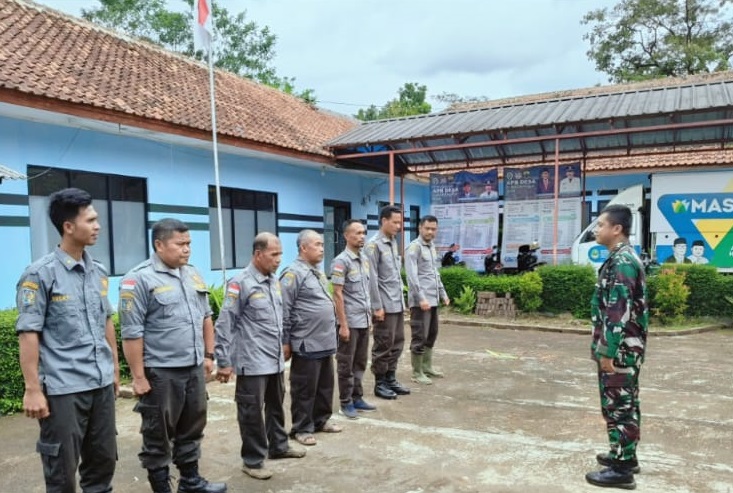 “Babinsa Desa Sukaharja, Serda Fuad, Lakukan Pembinaan Perlawanan Wilayah Bersama Linmas”