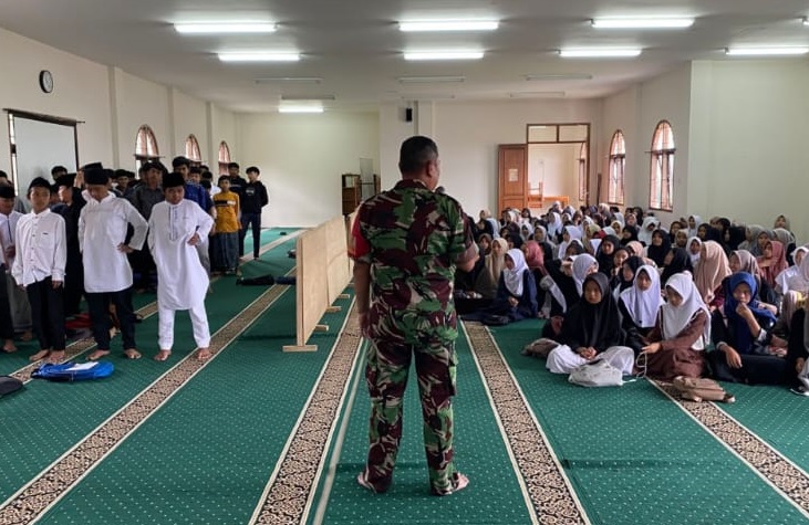 “Babinsa Desa Galudra, Serma Heri Aldi, Berikan Pembinaan Pertahanan Wilayah di SMP Al Mashum Mardiyah”