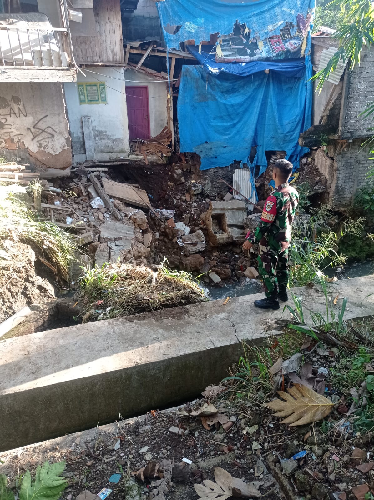 “Babinsa Bangbayang, Monitor Kejadian Longsor yang Menghantam Dua Rumah di Kp. Cipadang Kidul”