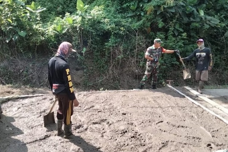 “Babinsa Desa Bojongkaso, Kopda Aris, Gelar Karya Bakti Pengecoran Jalan Desa”