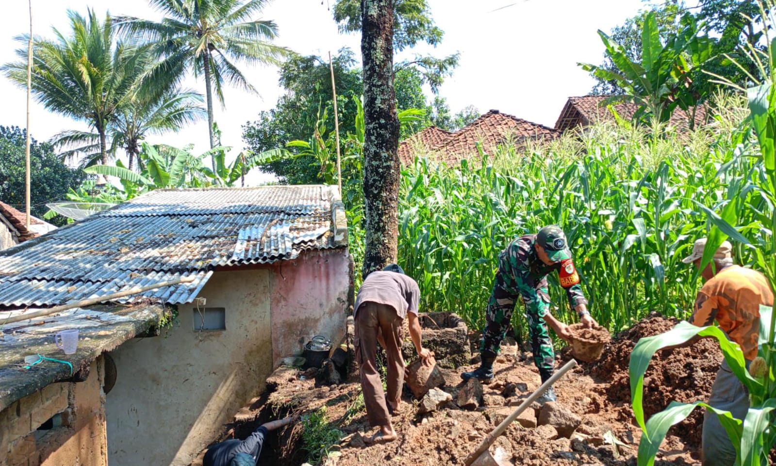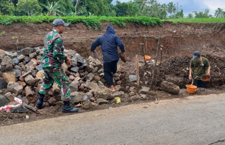 “Babinsa Sukamanah Serda Rival Gelar Karya Bakti Pembuatan Jalan Setapak”