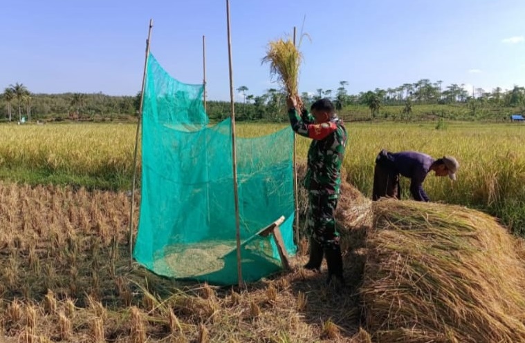 “Babinsa Desa Karangsari Pendampingi Panen Padi Kelompok Tani Karang Mutiara”