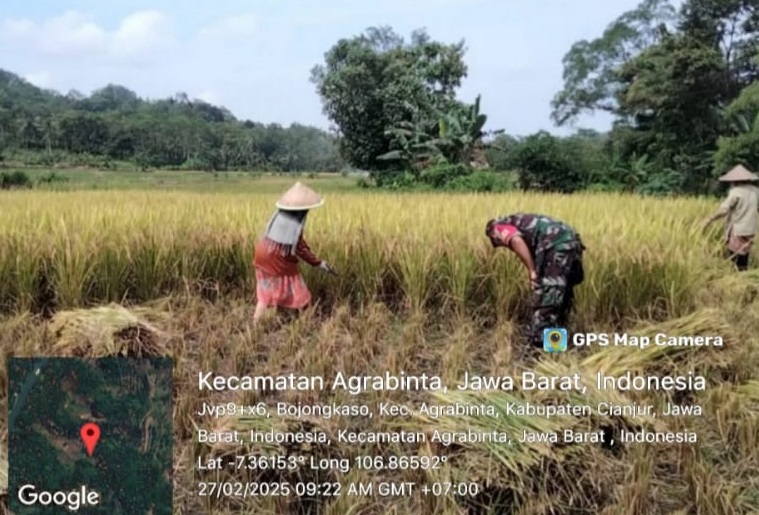 “Babinsa Desa Bojongkaso Kopda Aris Pendampingi Panen Padi Kelompok Tani Cili Tani”